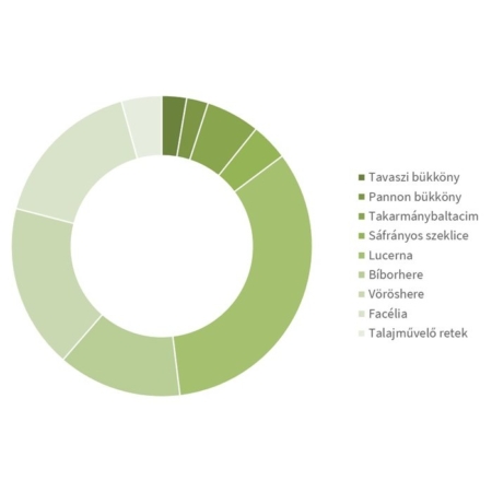 Ez azt jelenti, hogy a diagramon látható százalékok azt mutatják, hogy a keverékben az egyes fajok hány százalékát adják a kikelő növényeknek — nem pedig azt, hogy súlyra mennyi van belőlük.